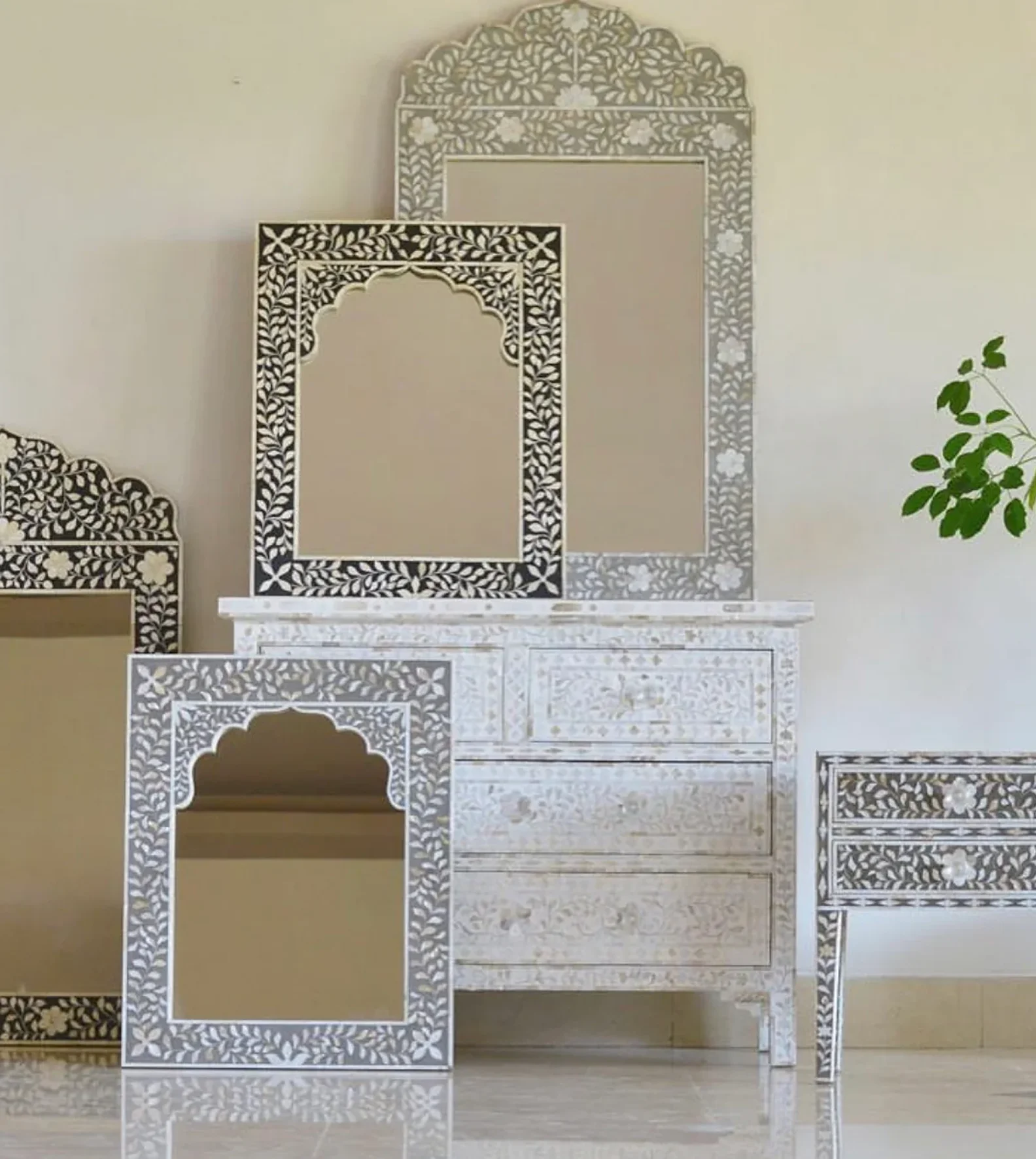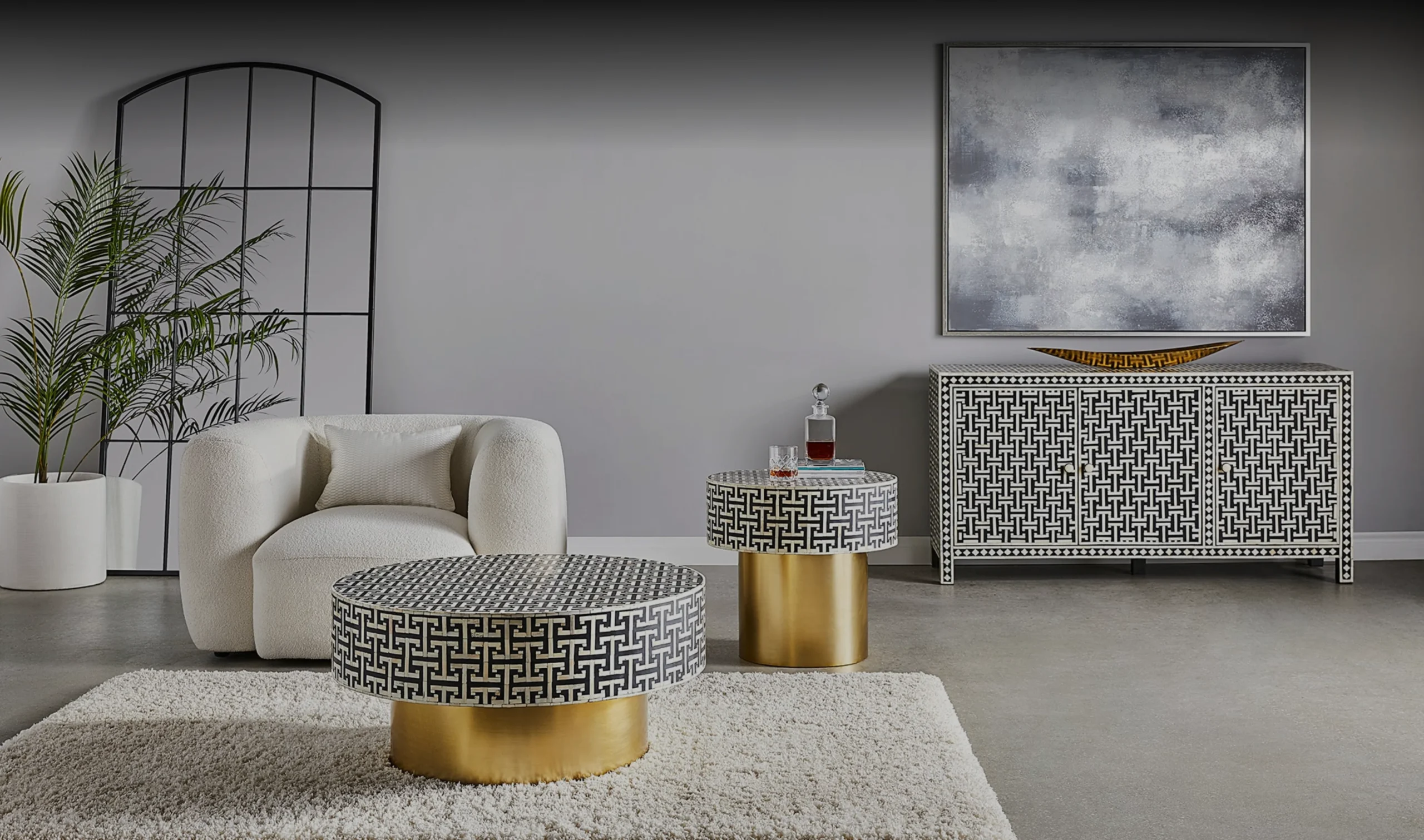 Bone Inlay Nesting Coffee Table Monochrome