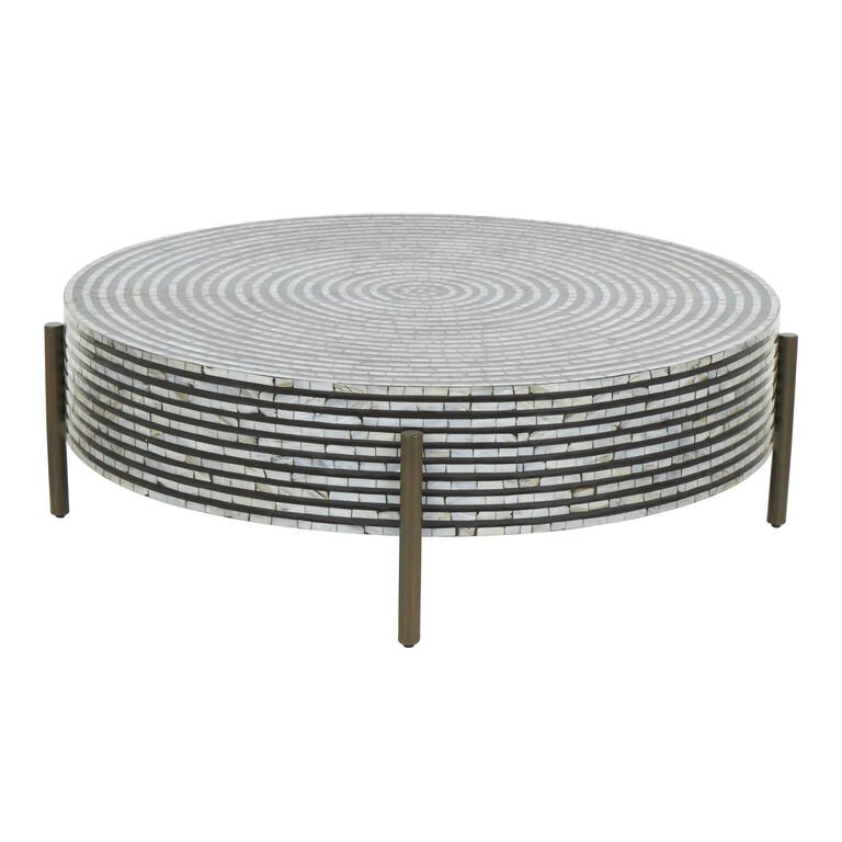 Athena Mother Of Pearl Inlay Round Coffee Table In Silver