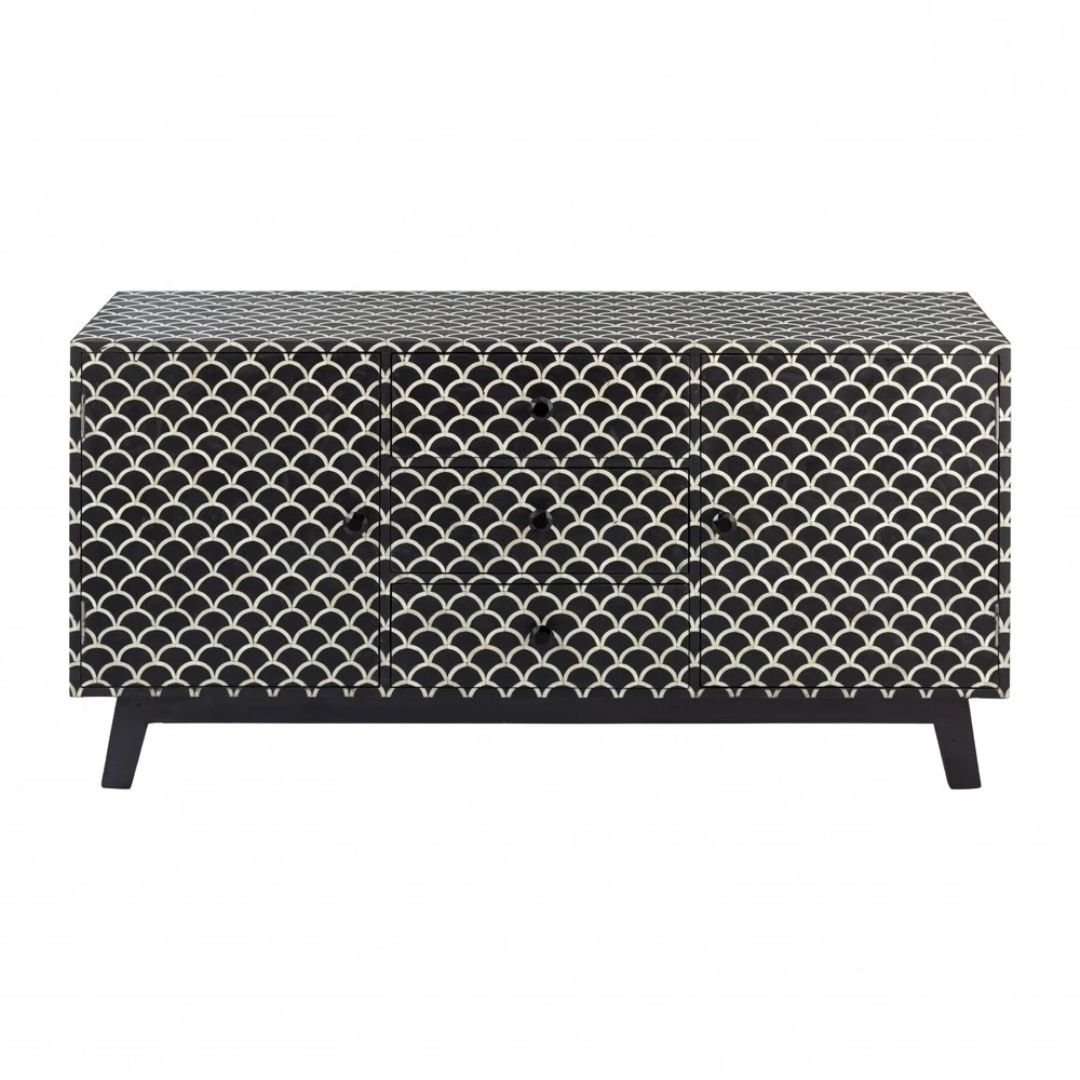 Bone Inlay Black Geometric Sideboard