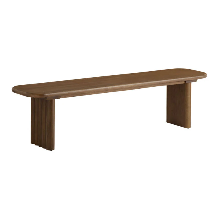 A stylish mid century–inspired dining bench crafted from solid wood, featuring elegant fluted legs and a warm brown finish. Perfect for dining tables, entryways, or modern living spaces.