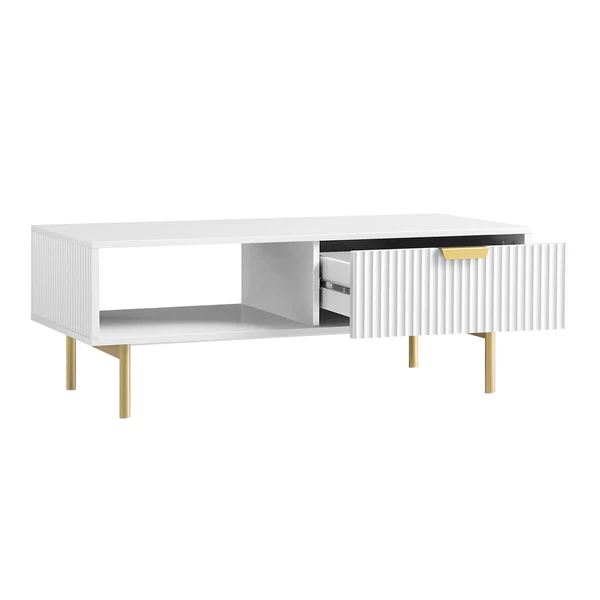 White Solid Wood Coffee Table With Drawer- Black Finish